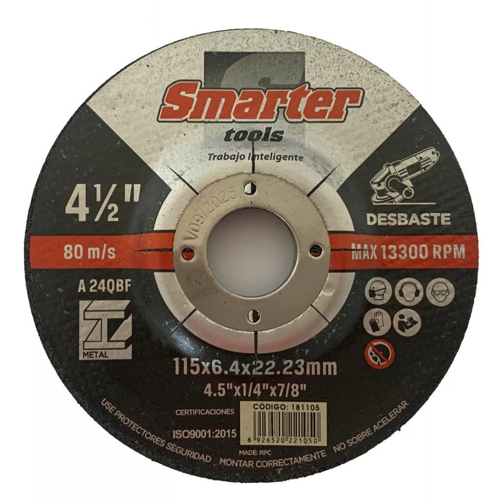 En stock En stock DISCO DESBASTE DE METAL 9 230X6.4X22.23MM 5 UNID Regístrate para ver $ precios Cód.181109